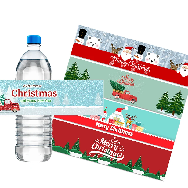 Christmas Water Bottle Labels Happy New Year Decor Labels Stickers Xmas Decor Santa Claus Christmas Tree Stickers